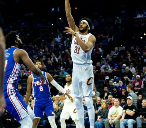 米切尔35+7+9打爆费城双枪,乔治14中7恩比德6失误,骑士双杀76人
