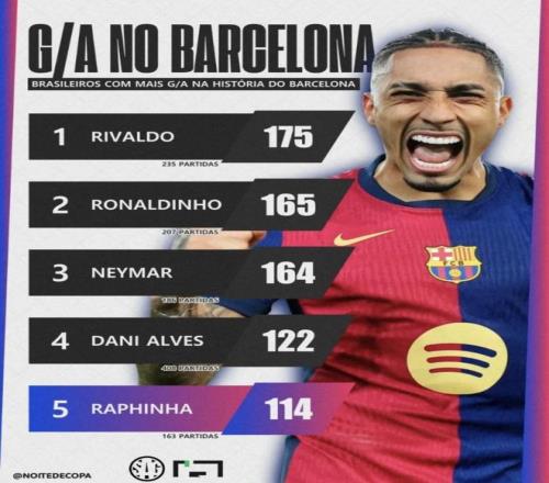 巴塞罗那队史巴西球员进球+助攻排行榜发布!第四名竟然是后卫
